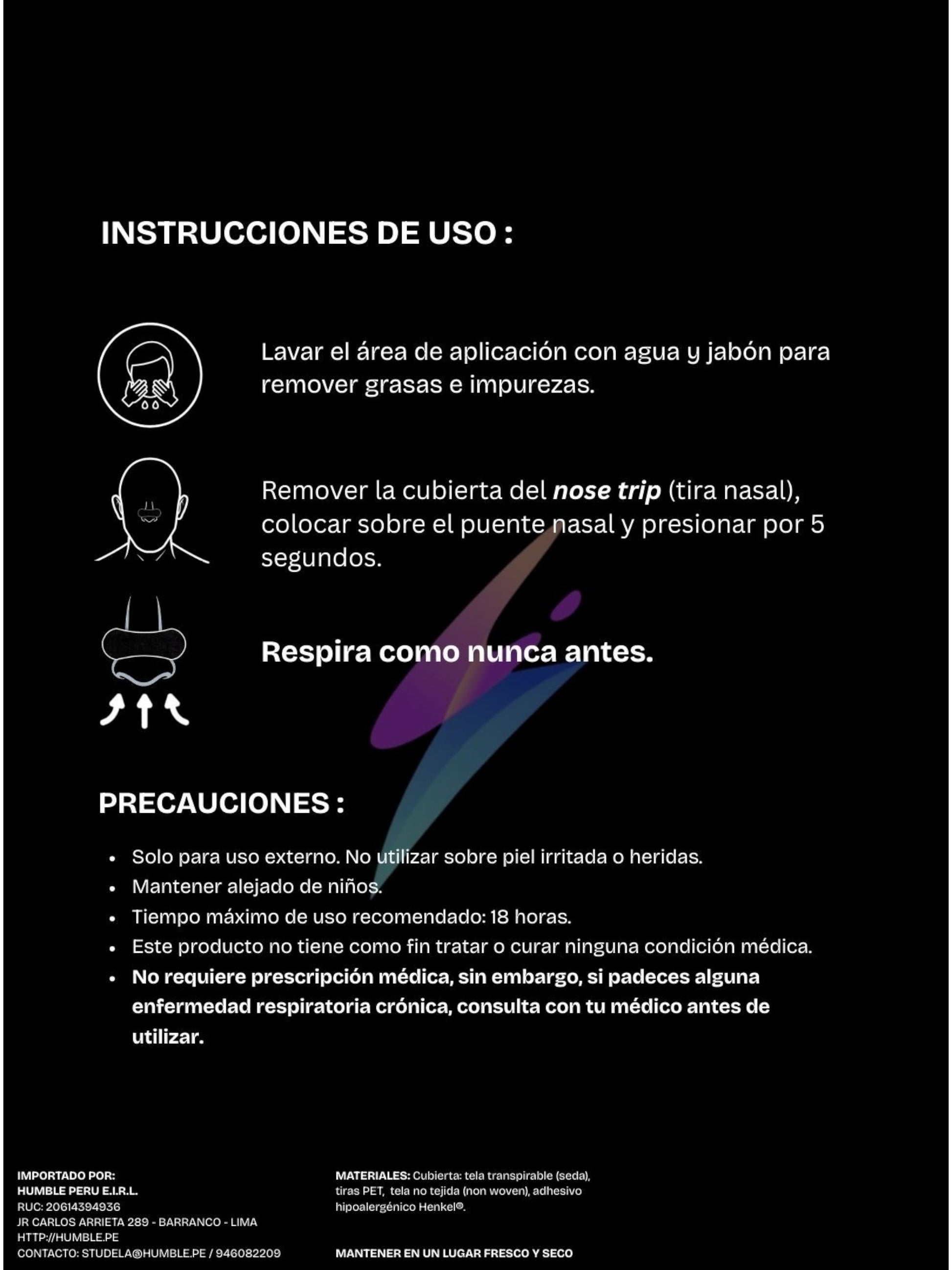 Las nose strips (tiras nasales) Humble te ayudarán a aumentar entre 30 y 50% la ingesta de oxígeno, garantizándote un sueño reparador y aumentando tu resistencia en entrenamientos de alta intensidad, y son además una excelente solución si padeces de ronquidos, alergias y congestiones nasales.